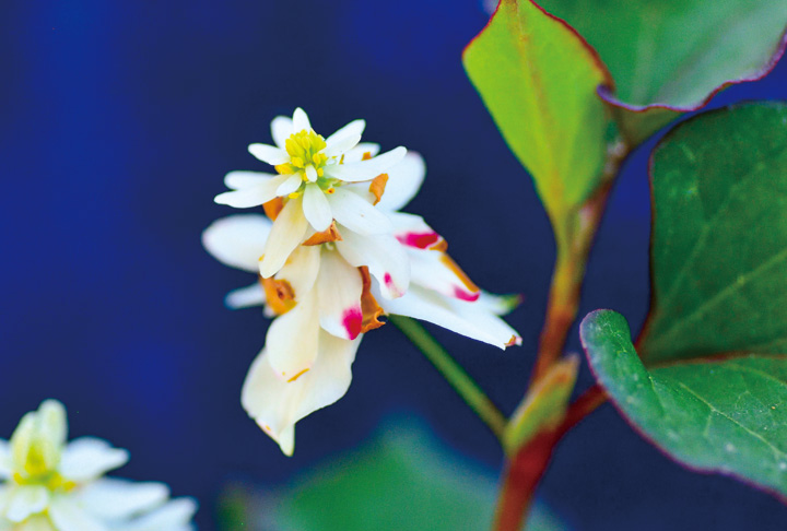 白い花びらに見えるのは苞(ホウ)で、葉が変形したもの。花は淡黄色の部分です。八重咲きドクダミは苞が幾重にも重なり、立体的なドレスのようです。