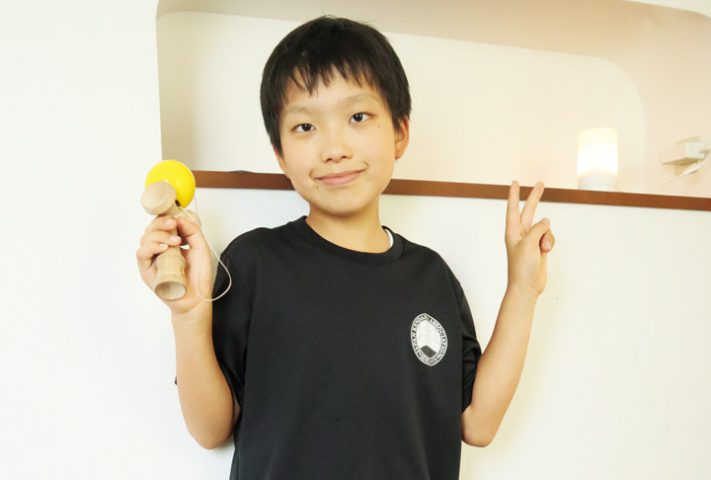 全国大会は、地区予選を勝ち抜いた13人が、トーナメントで技を競う。大角君は毎週末、母の洋子(ようこ)さんと広島市(仁保教室、南観音教室)などに行き、3時間、指導を受けたり練習会に参加したりしている。家庭では、毎日、45分の練習を欠かさない。自信のある技は、玉を皿やけんに次々と移していく「宇宙一周」などの一周系という。
