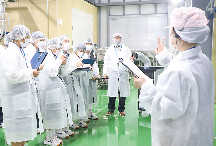 米や食品、燃料の総合卸業の食協(本社・広島市南区、武信和也社長)は7月12日、4月に完成した「新・志和精米工場」(東広島市志和町)に、市立志和中学校(同市志和町志和西、脇坂治海校長)の2年生28人を招待した。