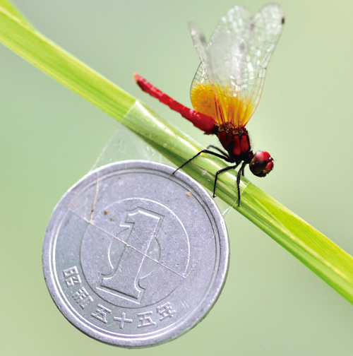 運よく赤い雄が一匹止まり撮影できました。膝より高く飛ばないので腹ばいで撮ることになります。