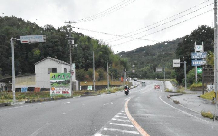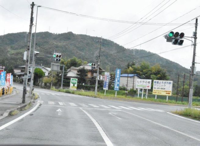 国道375号線を北に向かっていると、信号機のあるT字路に差し掛かります。左に行くと近畿大学に行きます。その信号を直進します。