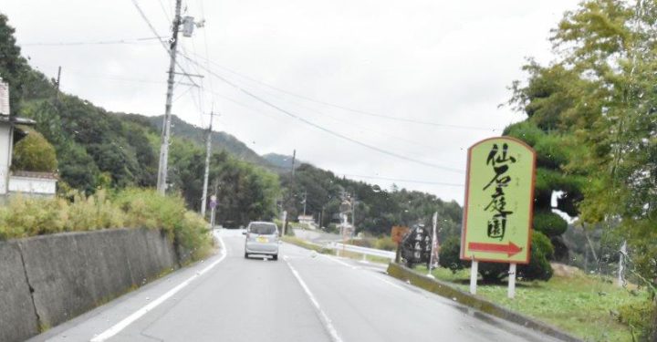 その先にある、信号機のない「仙石庭園」の看板があるT字路を右へ入ります。