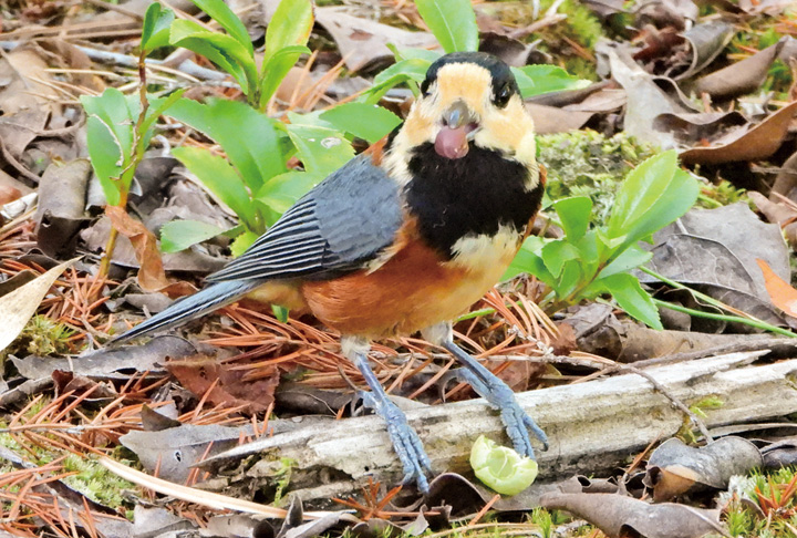 ヤマガラにとって地表にとどまるのは危険なのですぐに飛び去りました。