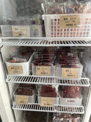 広島県産の鹿肉・猪肉・ダチョウ肉の他にも馬肉、カンガルー肉も!!私は種類に驚きましたが、常連さんは、まるでスーパーで買い物をするように、冷蔵庫からお肉を手に取られるようです(笑)