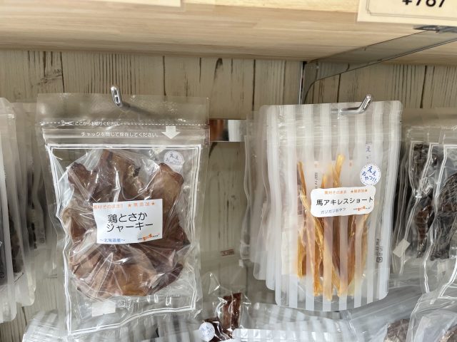 店内には、無添加で作られた犬のおやつや、犬の健康を考えたプレミアムフード、犬のごはん(生肉も!) など、見たこともないドッグフードがたくさん並んでいました。