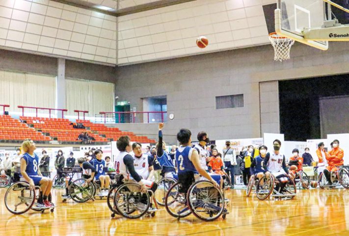 メインアリーナでは、車椅子バスケットボールチーム「広島Rise(ライズ)」と広島国際大の試合や、市内の健康・福祉に関わる団体によるパネル展示や体験コーナーなどがあり多くの人が楽しんでいた。