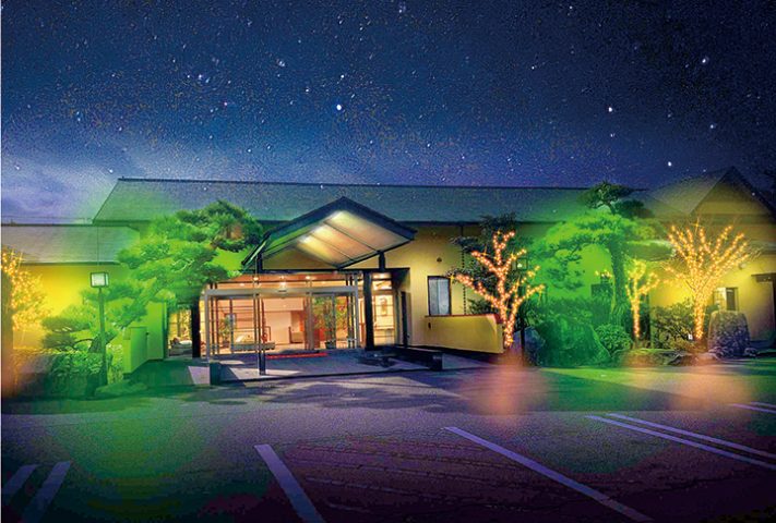 1万球の電球で、庭やダム湖畔を装飾。穏やかで落ち着いた音と光でお客さまをお迎えします。宿泊しない人も鑑賞可。
