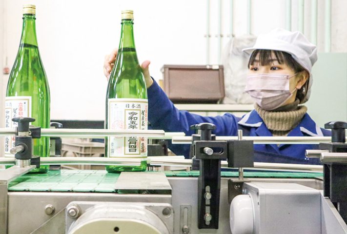 同酒造では、3日の節分の夜から一晩中もろみを搾り続け、早朝から搾り上がった生原酒を瓶詰めにしてラベルを貼り、1・8㍑入り約1000本、720㍉㍑入り約3400本を手際よく箱詰めした。