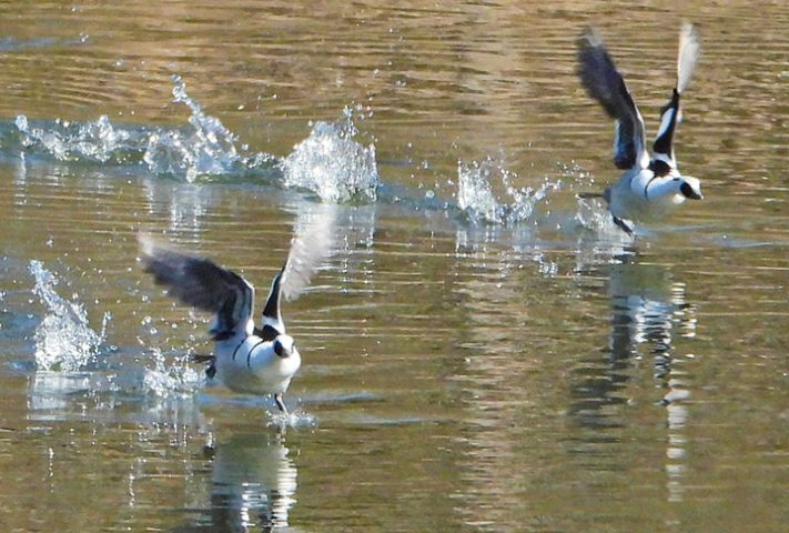 驚いたミコアイサは大慌てで堤防とは反対方向に水面を走って逃げました。長年ミコアイサを見てきましたが、初めて見る逃げ方です。