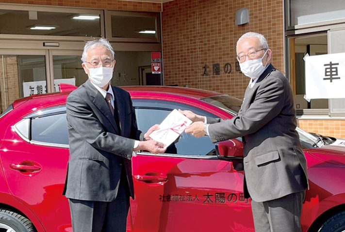 自動車メーカーなどの労働組合でつくる自動車総連は福祉活動の一環として、3月3日、社会福祉法人太陽の町(東広島市黒瀬町乃美尾、山田正史理事長)に、マツダ車両(200万円相当)を贈った。