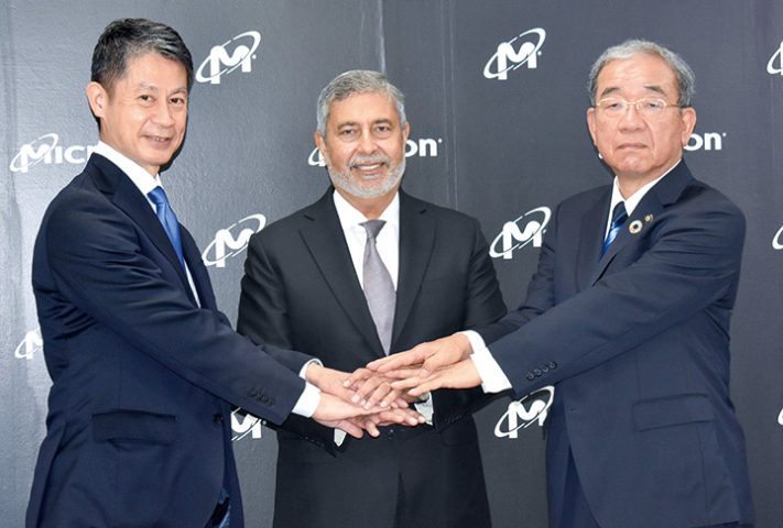 会見には、マイクロン・テクノロジーのサンジェイ・メロートラCEO(最高経営責任者)や湯崎英彦県知事、高垣広徳東広島市長らが出席。