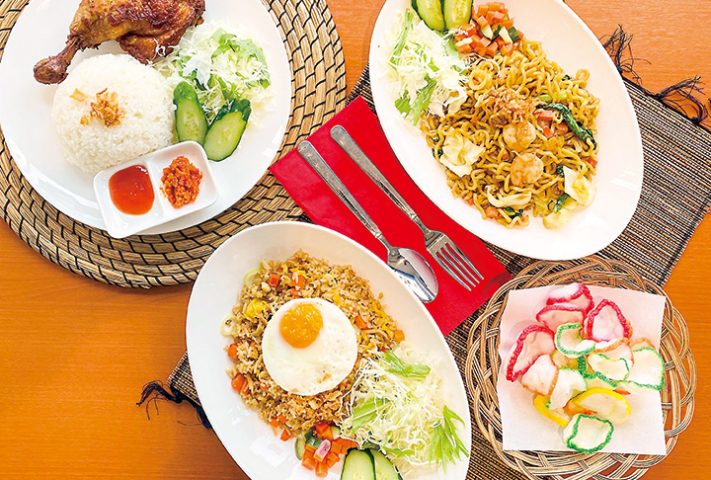 おすすめメニューは、ごはんと具材を炒めてインドネシアの香辛料で味付けした「ナシゴレン」と、牛肉をココナツミルクと香辛料で煮込んだ「ルンダン」。