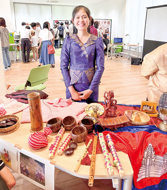 参加者は6カ国(マレーシア、タイ、カンボジア、フィリピン、ベトナム、中国)の留学生と、日本人学生、市民計約120人。留学生は自国の文化やファッションなどを日本人市民らに日本語と英語を交えて丁寧に紹介。特別イベントタイムでは、タイのルナーさんが民族衣装を着て自国のダンスを披露。会場内は手拍子で盛り上がった。