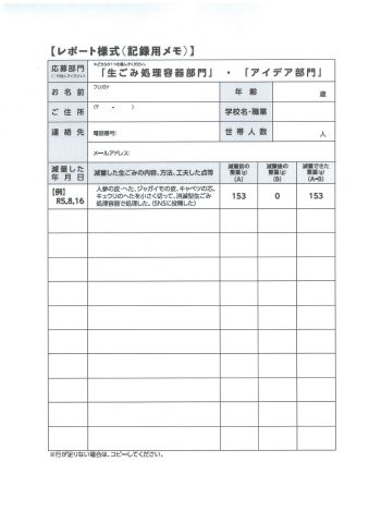 〒739-8616 東広島市西条下見6-6-23 株式会社プレスネット 「生ごみ減量コンテスト」係まで