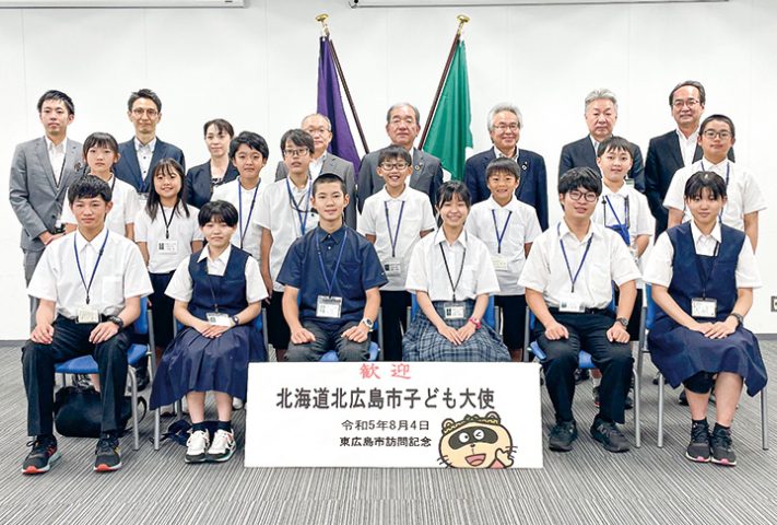 東広島市と姉妹都市縁組を結んでいる北海道北広島市の子ども大使14人が8月3~6日、東広島市などを訪問した。子ども大使は小学生8人・中学生6人。東広島市では市内の交流校で互いの学校行事や町の特徴を発表し合うなどして親睦を深めた。廿日市市、広島市では宮島や平和記念公園を見学し、8月6日には平和記念式典に参列した。