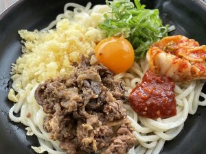 ③ クセになる味「お食事処 くろぼや」名物の「へそうどん」(東広島市福富町久芳)