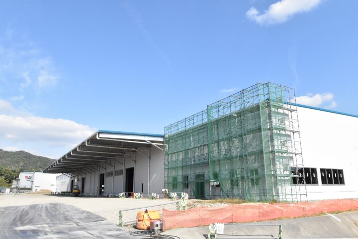 東広島市高屋台に建設中の「クレアネイト株式会社 東広島事業所」(本社:東京都品川区東品川/井上弘一代表取締役兼執行役員社長)。