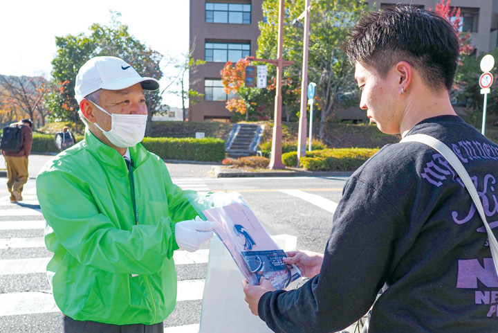 自転車の盗難や、自転車が関係する交通事故が多発していることから、東広島署は10月31日、広島大学前交番周辺で、自転車を利用する学生らに、盗難防止を呼び掛けるチラシや、自転車用のワイヤ錠を100セット配布した。