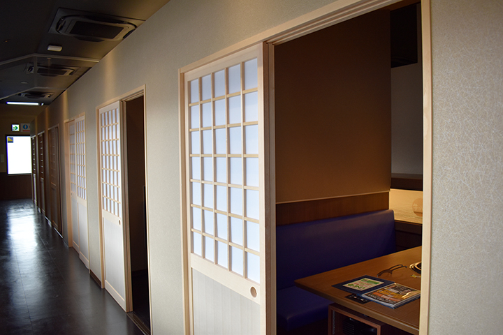 のれんや障子で仕切られた個室は家族や友人とゆったりくつろげる空間になっています。