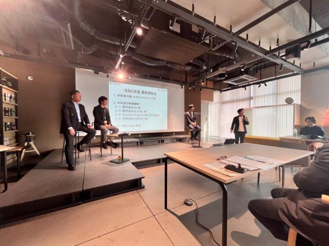 共創プロジェクトにより地域力の向上を目指す東広島市の「トルク事業」。令和5年度は4事業者が採択され、それぞれ取り組みを行ってきた。3月22日に広島大学ミライクリエ(同市鏡山)で最終報告会が行われ、高垣広徳市長をはじめ関係者ら約40人が参加。4事業者による報告や3人のゲスト(福山雅夫氏、中野瑛登氏、井上遊星氏)を交えたトークセッションが行われた。