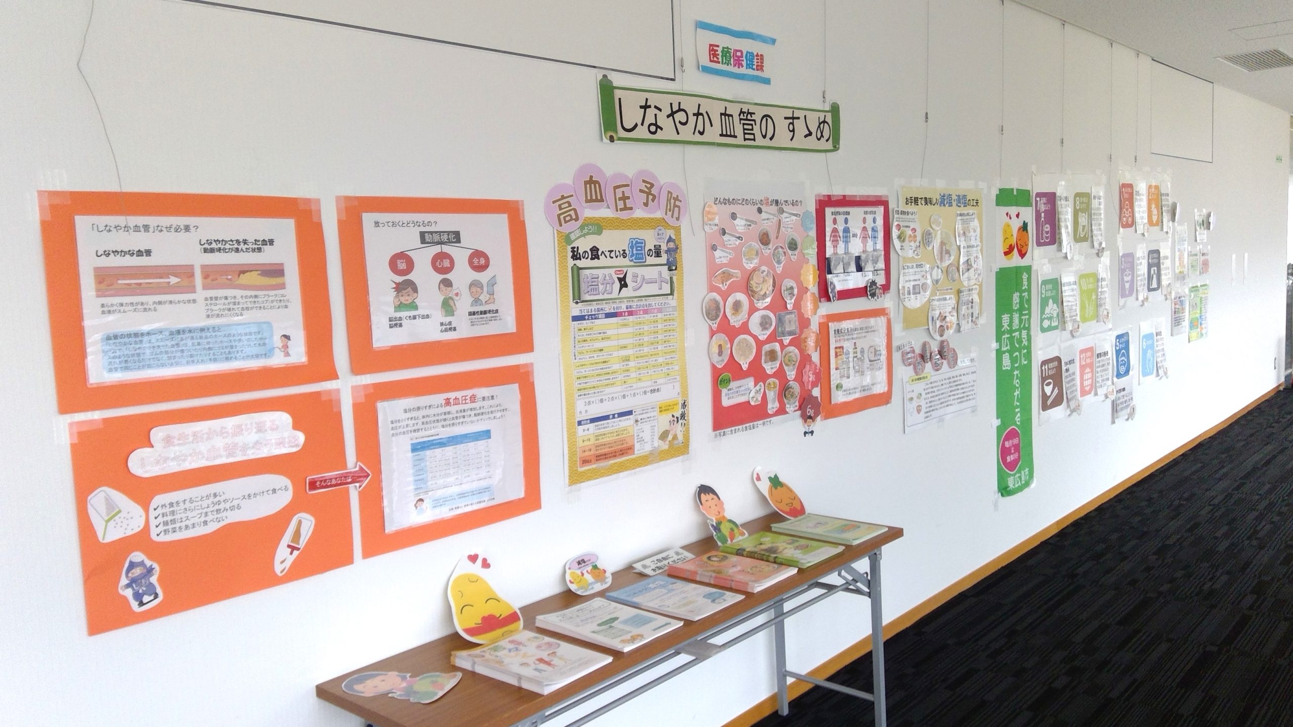 東広島市役所の本館10階展望ロビーの展示スペースで、栄養バランスや食の大切さなどを伝える展示があります。