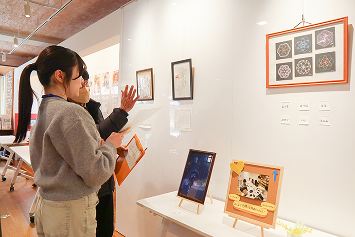 ワークショップでは、来場者に声掛けし点描画の描き方やコラージュのやり方を丁寧に教えていた。仲間と一緒にイベントなどに主体的に関わりやり遂げたことなどが自信につながり、大きく成長したという。