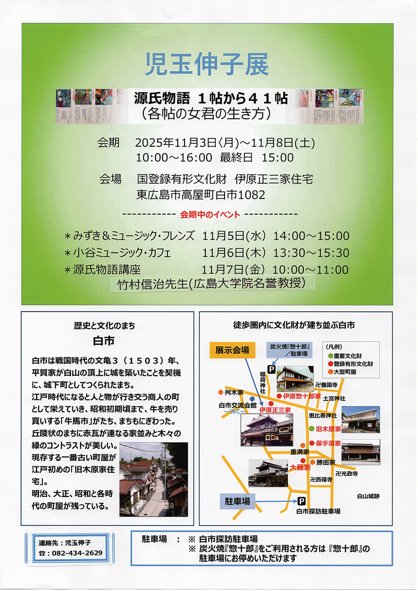 伊原正三家住宅で「児玉伸子展 源氏物語 1帖から41帖」11月3日~8日開催【東広島投稿バコ】
