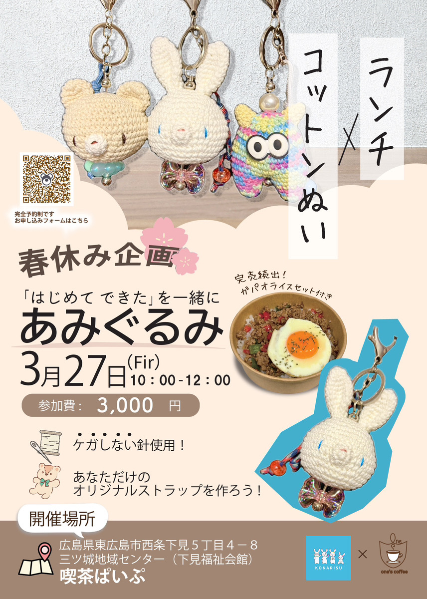 あみぐるみ作りとランチで交流 one’s coffeeが3月27日にイベント開催【東広島投稿バコ】