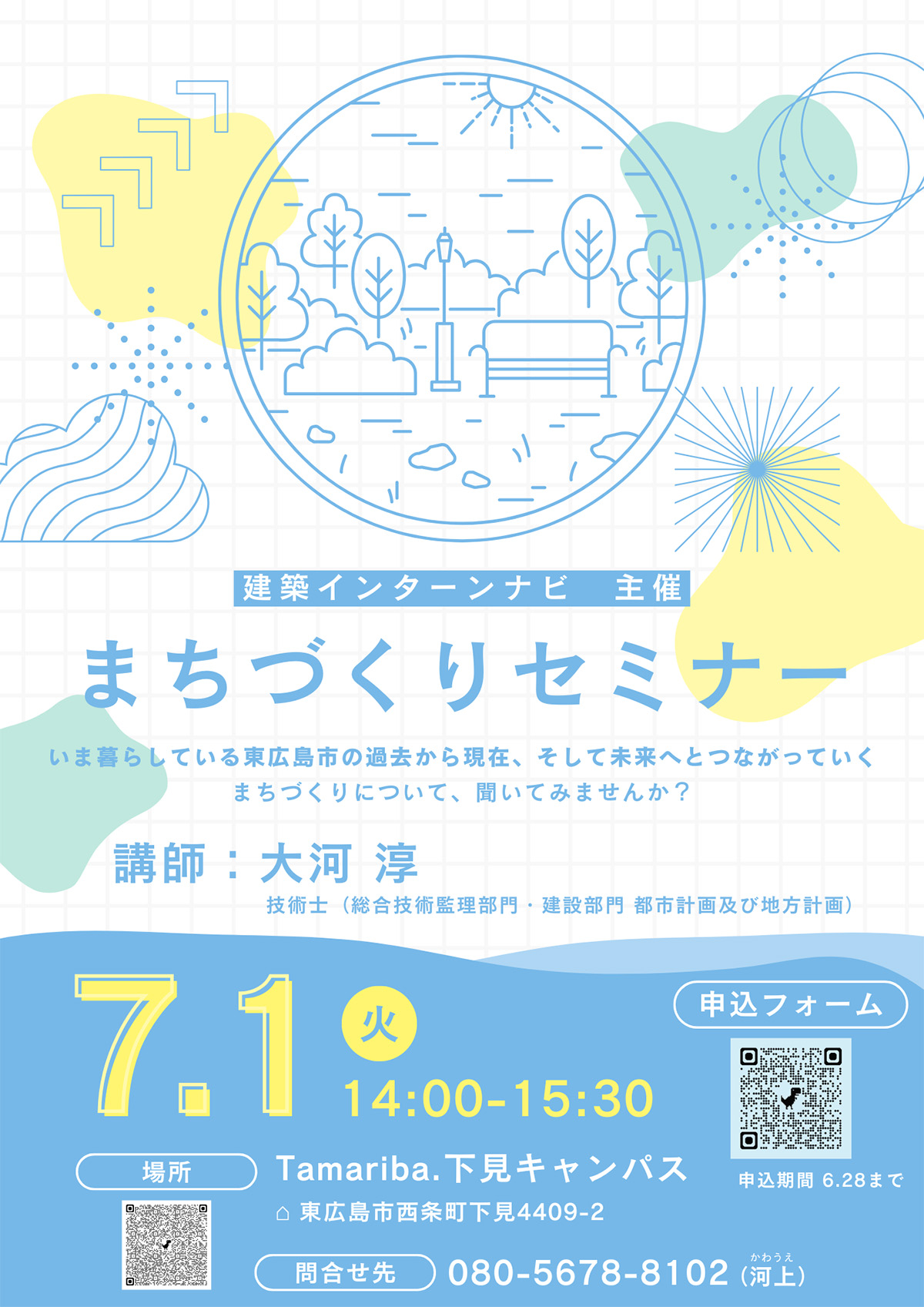大学生対象の「まちづくりセミナー」 Tamariba.下見キャンパスで7月1日開催【東広島投稿バコ】