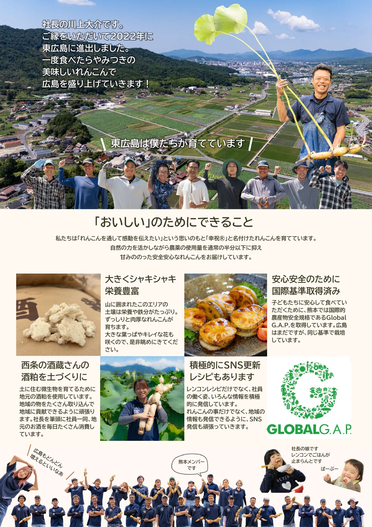 カワカミ蓮根は、熊本県を拠点に高品質なレンコンづくりを行う生産農家。2022年、広島県と東広島市の誘致により東広島に進出し、高屋町宮領に東広島営業所を構えました。昨年初めて収穫された東広島産レンコンは一部のスーパーに限定流通していました。昨年好評だった直売を今年も行います。