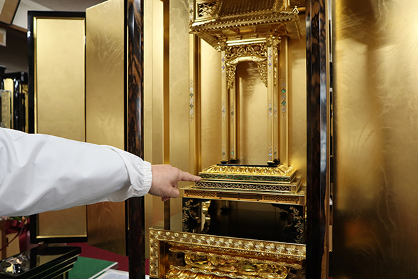 経済産業大臣賞を受賞した総開き扉の仏壇(撮影・山北)