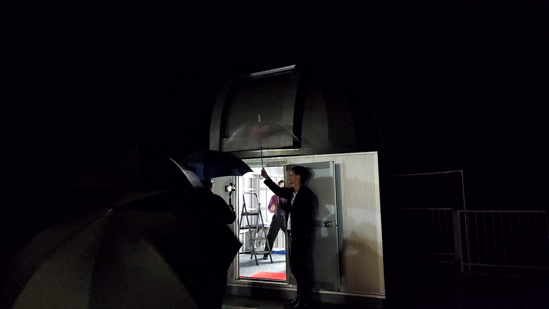 ただ本当に悲しかったことに、当日(11月1日)は記録的な豪雨。雨が降ると天体望遠鏡は使うことができません。これはさすがのお二人も残念そうでした。