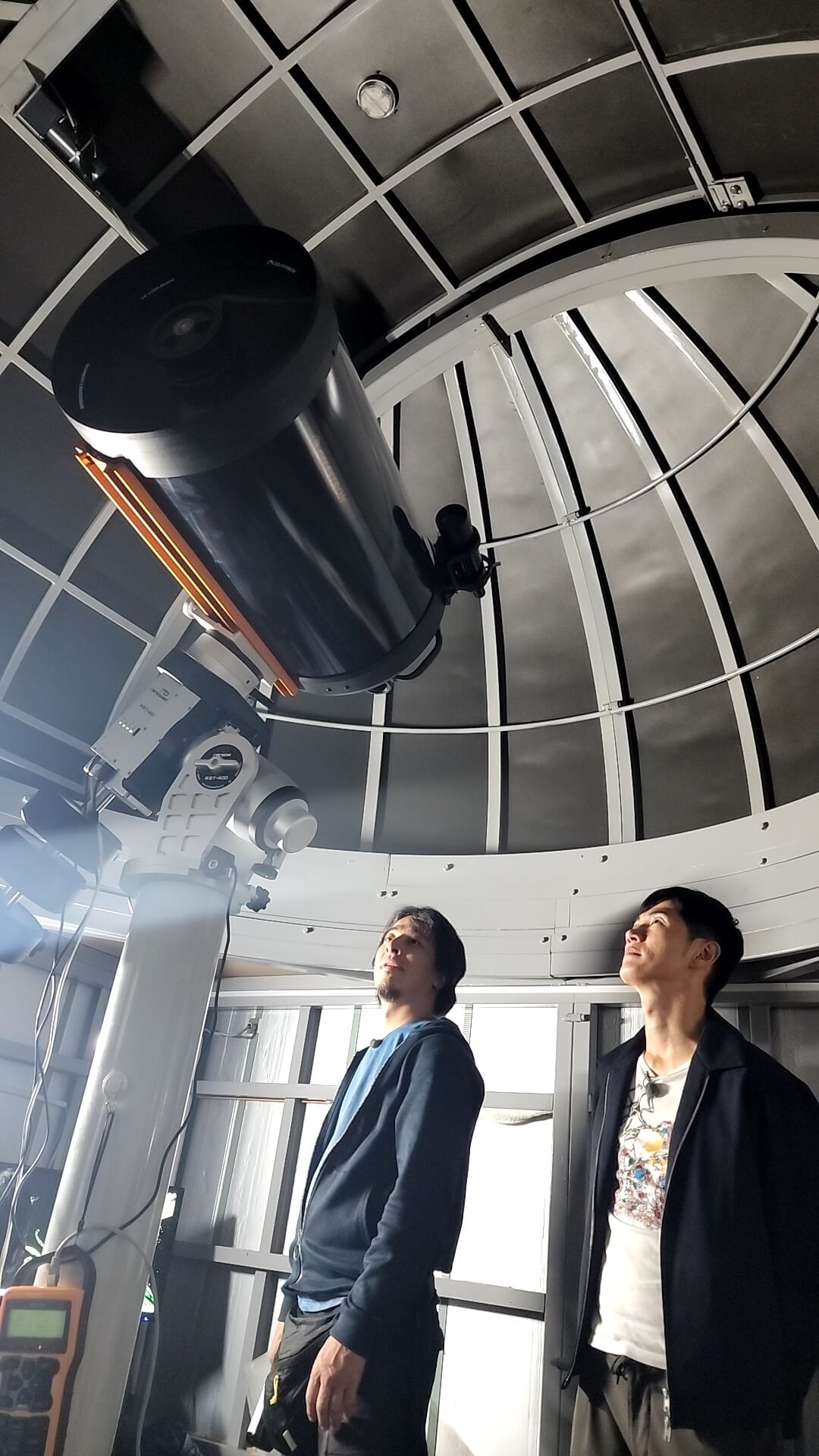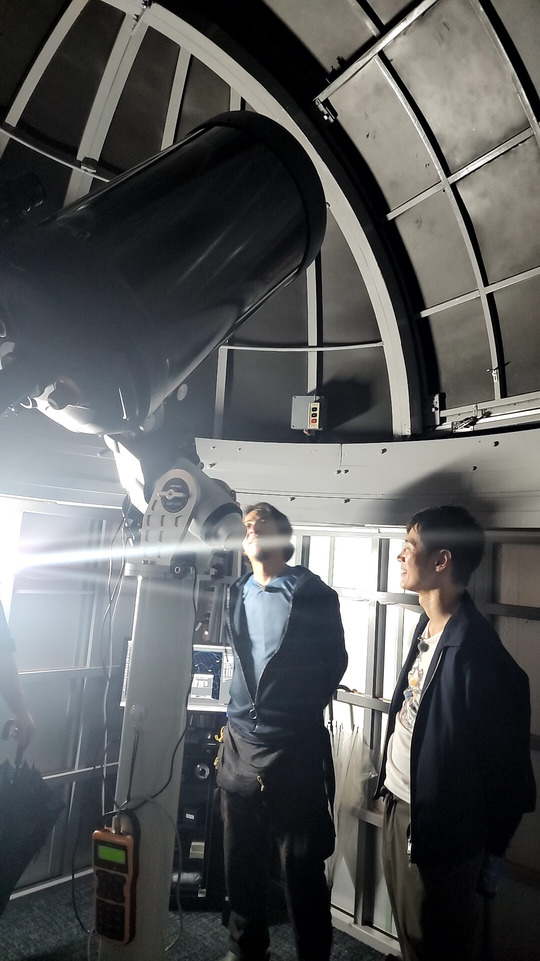 宿泊場所に望遠鏡があることは事前に少し聞いていたようですが、実物はその想像を大きく超えていたようでお二人とも感心しきりでした。