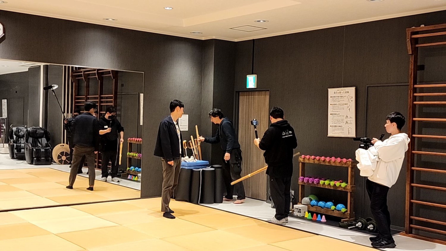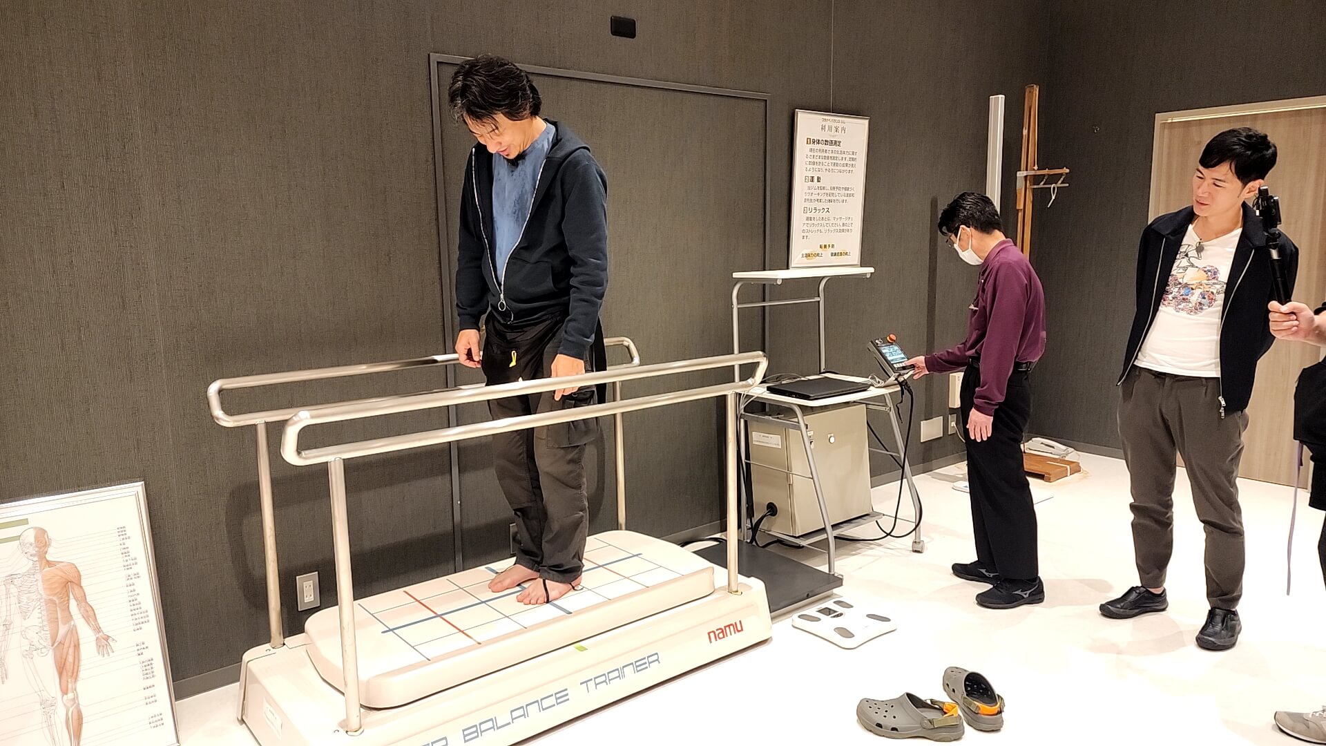 少し目を離しただけなのに、ReHacQご一行を見失いました。予想通りの自由な人たち。少し探すと、ホテル白竜湖リゾートの1Fにある『ワタナベバランスジム』で無邪気に遊んでいるのを発見しました。
