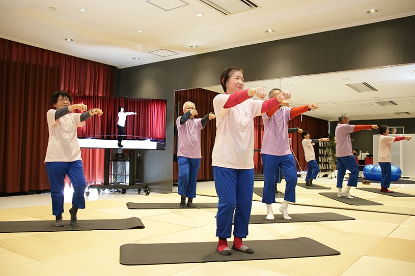 身長を測ったり、瞬発力を測ったり、体のバランスを測ったり、何をやっても楽しそうなご一行。今回は時間外ということもあり簡単な説明しかできませんでしたが、本来は一人ひとりに合った運動プログラムを提供しています。