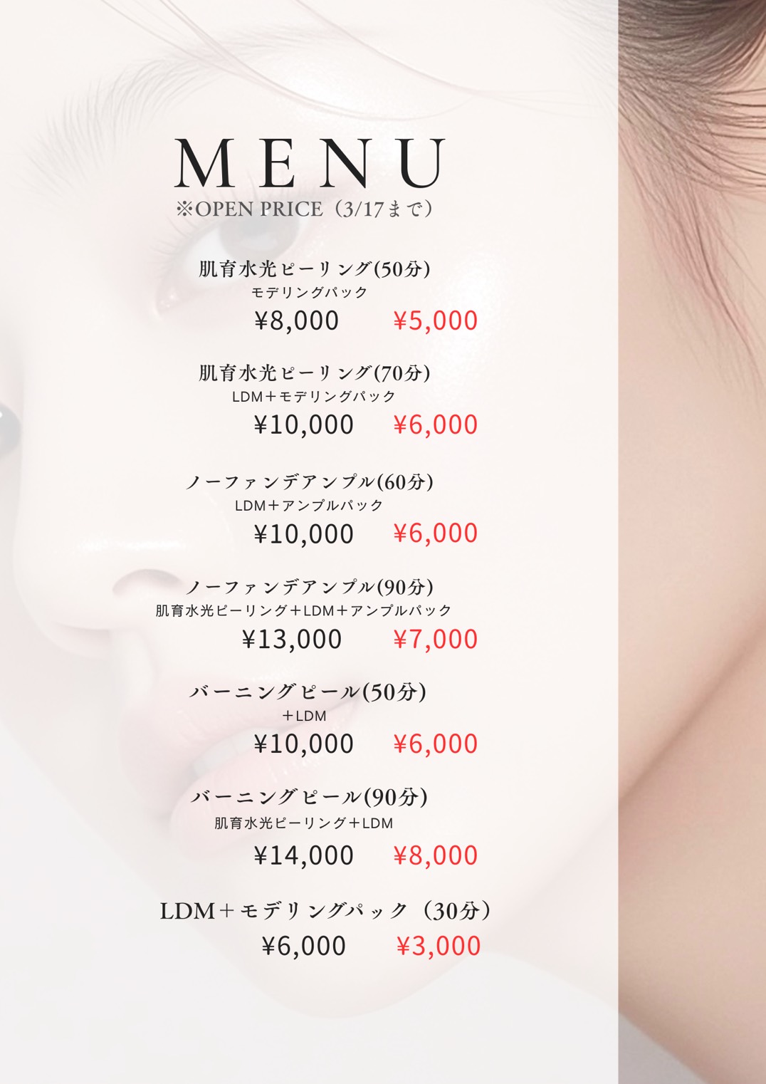 オープンを記念し、2月17日から3月17日まで「ノーファンデアンプル」とLDM施術のセットメニューを特別価格6000円(通常価格より4000円引き)で提供しています。初めて利用する人でも試しやすいキャンペーンとなっています。詳しくは、IRENEのInstagramからチェックしてみてください。