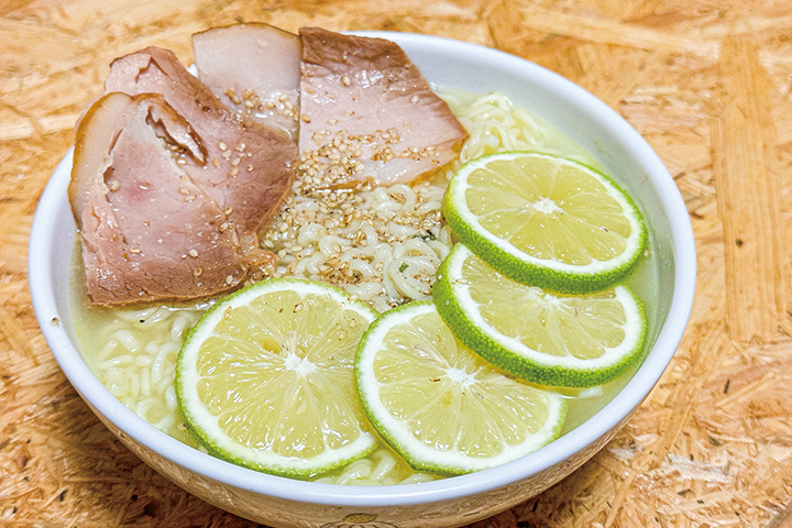 おすすめは、塩ラーメンに輪切りのグリーンレモンをトッピング。また、肉と野菜を炒めて、最後にスライスしたグリーンレモンを入れて少し炒めるとほどよい酸味が料理を引き立てるという。