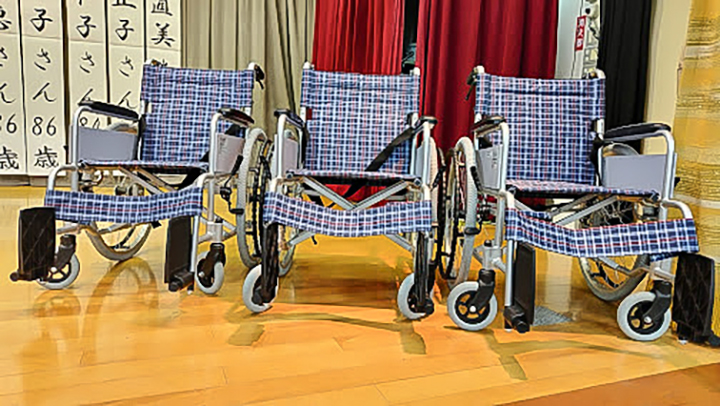 マツダの退職者でつくる東部地域マツダOB会は2024年12月13日、特養老人ホーム長寿苑(東広島市西条町馬木、梶原賢典理事長)に車椅子3台(約10万円相当)を贈った。同会は、社会貢献活動の一環として毎年、社会福祉施設に寄贈。今回で計106台(約530万円相当)となった。