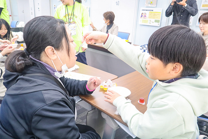 参加者たちは、高齢化社会や介護の仕事に関するミッションをクリアしながら介護の重要性について学んだ。実際の介護施設で働く職員から、食事や立ち上がりの際の介助を教わり、車いすの体験もした。イベントの最後は、児童から介護職員に質問する時間が設けられた。子どもたちは、介護の仕事をはじめたきっかけや、実際にお年寄りと接するときに気をつけていることなどを質問していた。
