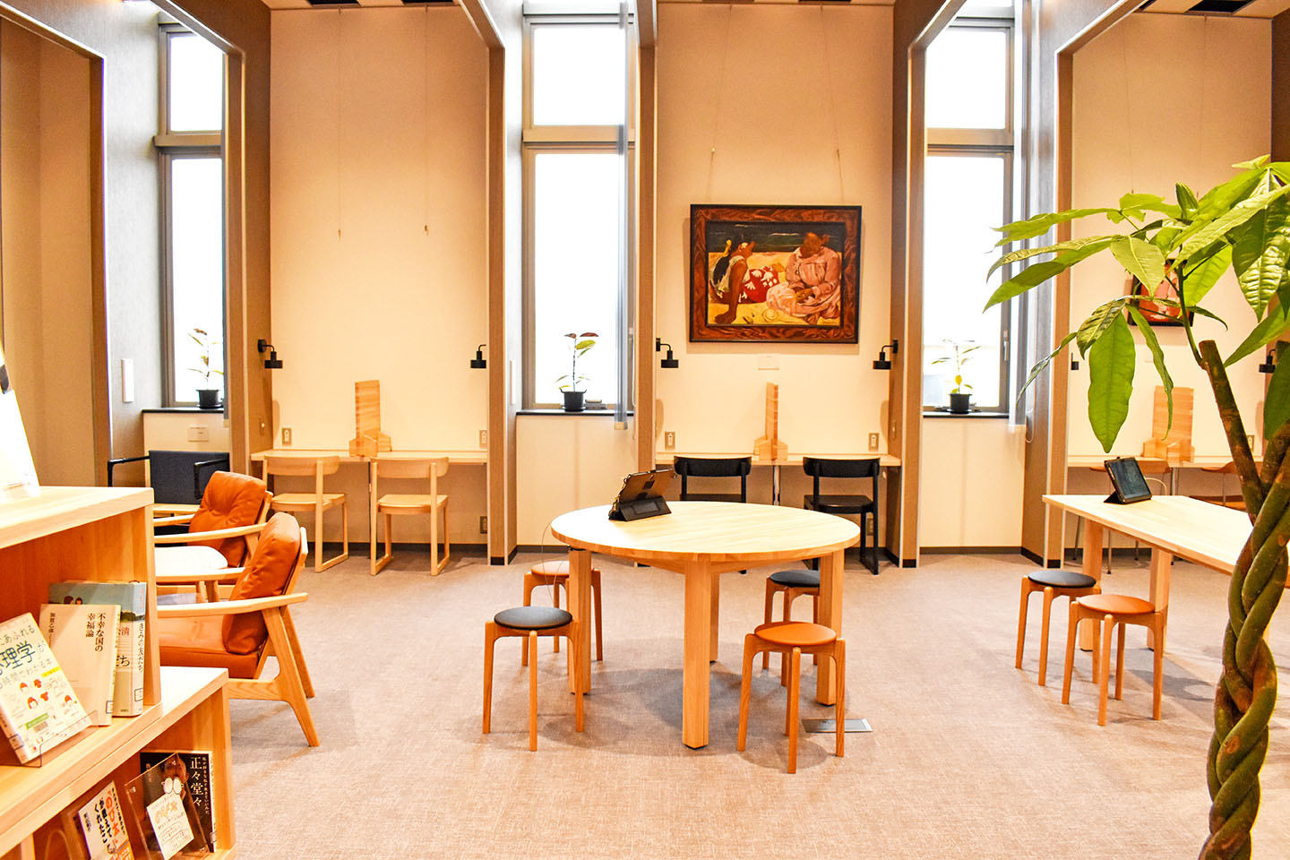 高屋図書館は、ICTを活用した新しい形の図書館。約1500冊ある蔵書は全て閲覧専用。タブレットやパソコンが利用でき、電子書籍を楽しむこともできます。