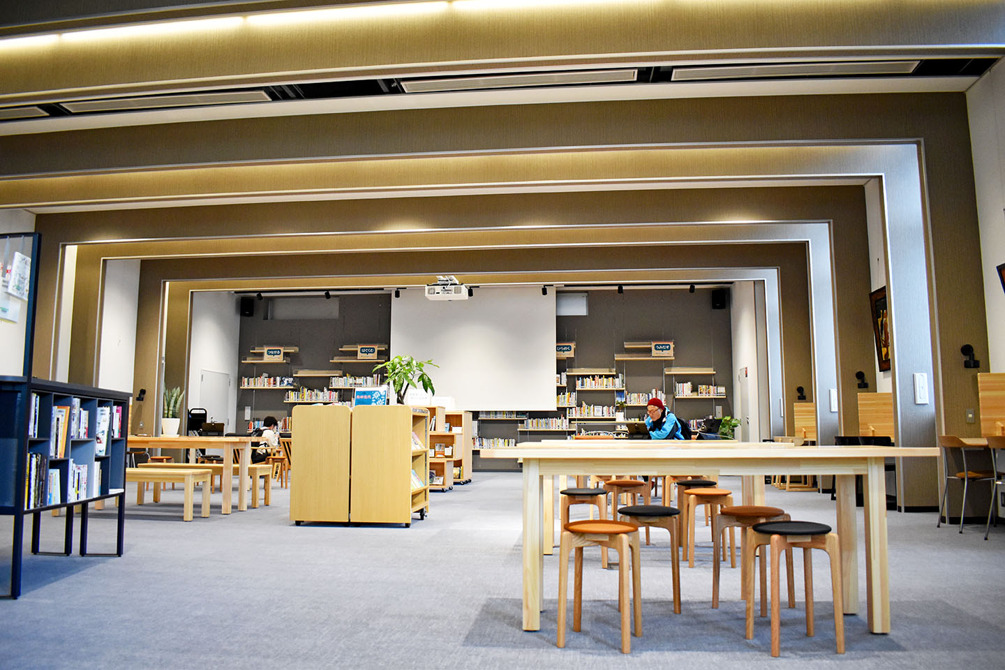 本を借りたい場合は、市内のほかの図書館にある本を予約システムで予約し、ラウンジ入口前の24時間予約本受取ロッカーで受け取ることができます。