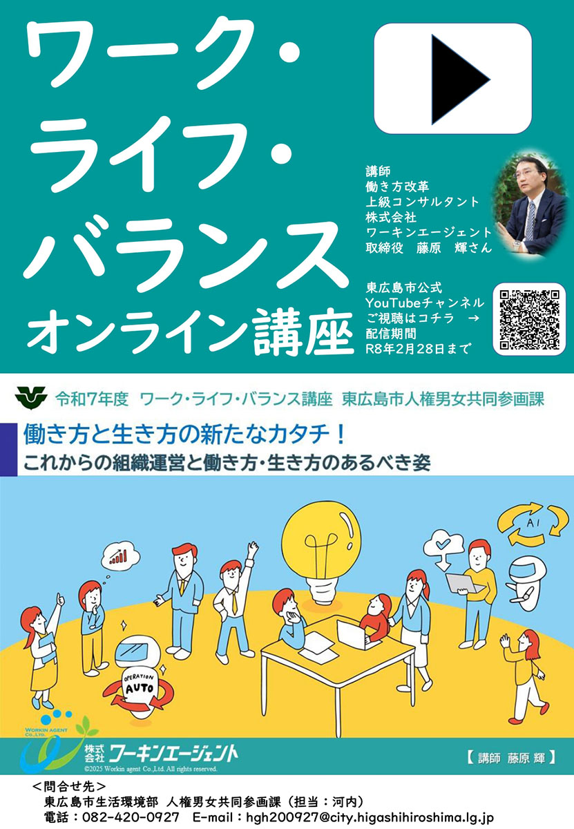 東広島市は、市公式YouTubeチャンネルで「働き方と生き方の新たなカタチ!ワーク・ライフ・バランスオンライン講座」を配信しています。