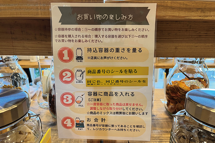 4サイズの瓶も販売されていましたが、できるだけ持込み容器を持参してほしいそうです。