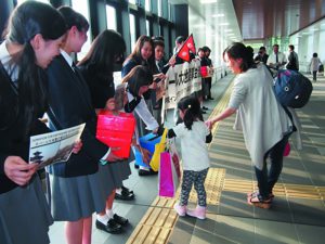 武田中・高インターアクトクラブ ネパール大地震の被災地救援へ JR西条駅で募金活動
