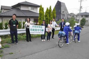 中央中学校学校見守り隊を結成 下校の生徒に声かけ