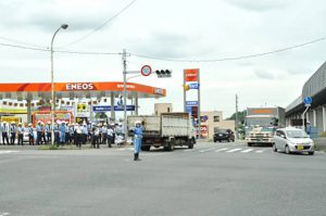 桧山交差点で交通規制訓練 信号停止させ手信号で誘導