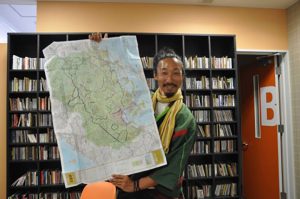 札幌市の信長さん 自転車の軌跡で信長を描く