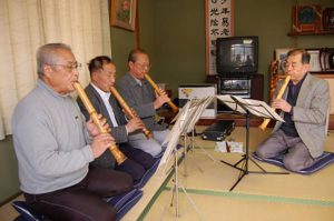 介護施設や秋祭りで演奏 「尺八の音色で心和ませて」