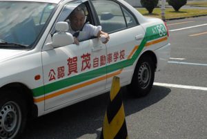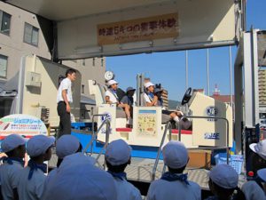交通安全運動出発式で衝突体験