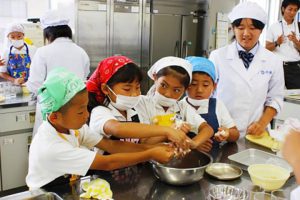 枝豆クッキングで西農高生と交流 御薗宇小3年